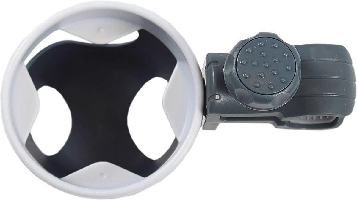 Een mooie universele bekerhouder van A3 voor op de kinderwagen of wandelwagen! Met de klembevestiging met schroef past hij vrijwel overal op.