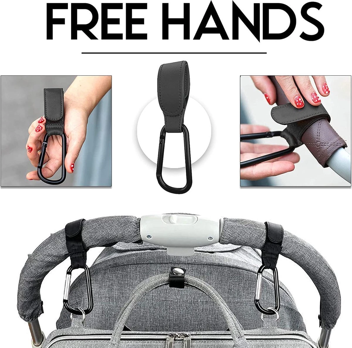 BOTC Kinderwagen Tassenhaakjes – Leer – Haakjes Voor Tassen – Set Van 2 – Leather – Extra Stevig – Buggy Haakjes – Zwart