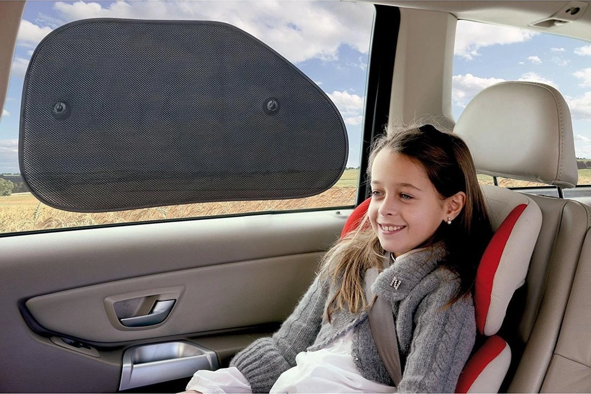 Bescherm je passagiers op de achterbank tegen de felle zon met deze zonneschermmen van Car Plus. Je plakt de schermen gemakkelijk tegen je zijruiten met de bijgeleverde zuignappen.
